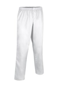 Pantalón de trabajo de corte recto, confeccionado en tejido de sarga ligera y resistente. Cintura elástica en todo el contorno para facilitar su colocación. Cierre central con cremallera y botón.
